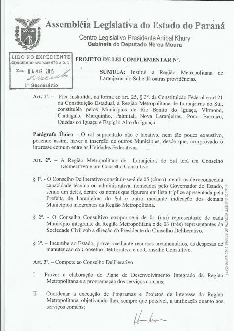Câmara se manifesta contraria a criação da Região Metropolitana de Guarapuava.