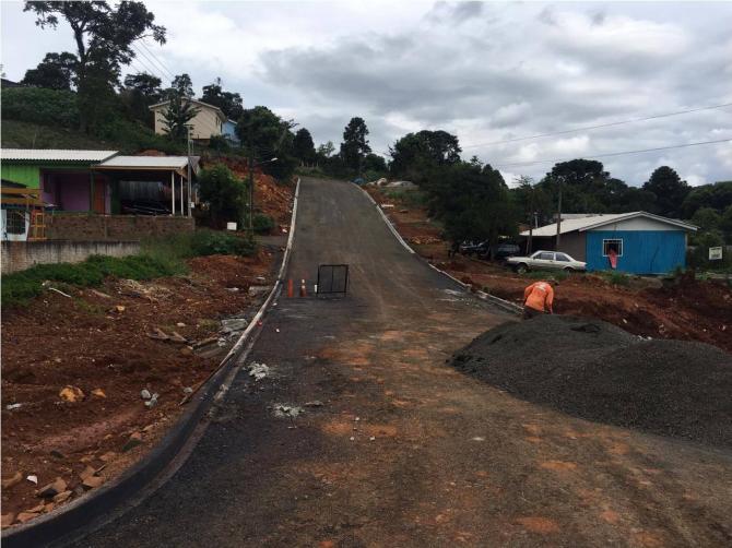 Júnior Gurtat e Anderson de Oliveira vistoriam pavimentação no Água Verde