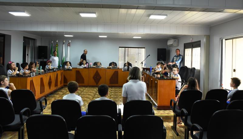 Na oportunidade os legisladores falaram sobre as atribuições do Legislativo, do funcionamento da Câmara e da importância da vereança. “As visitas são importantes, pois iniciam os pequenos sobre conceitos da política, os aproximando desta área. Muitas vezes, por exemplo, existe uma confusão relativa às atribuições dos Poderes Legislativo e Executivo, sendo que uma simples explanação pode resolver essa indagação e tantas outras”, explicou o 1° Secretário, Gurtat, que também falou às crianças sobre as atribuições da Mesa Diretora.