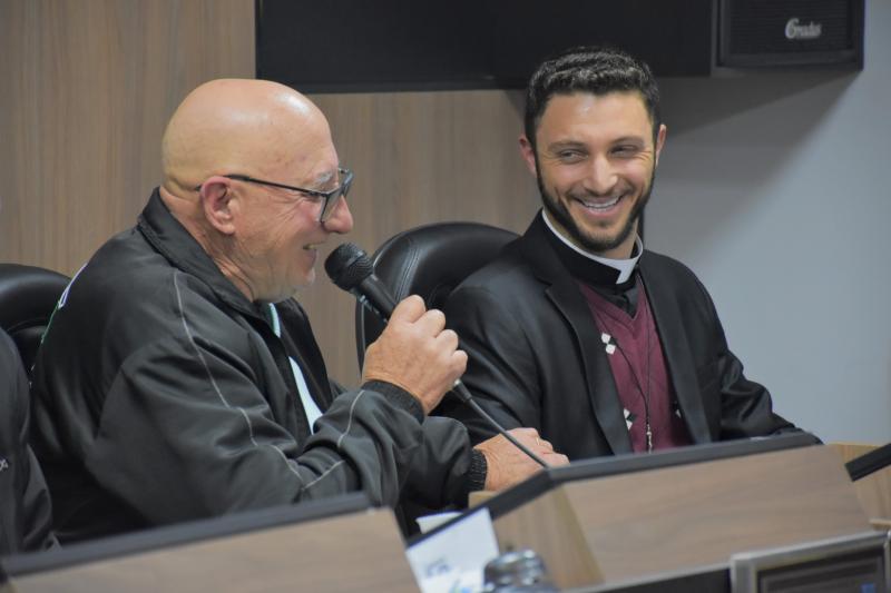 O autor da proposição, vereador Ademilson, destacou a justa homenagem. “O dia 27 de agosto foi um dia muito especial. Para nós da Igreja Católica, um momento histórico. Neste dia um jovem, natural do Pinhão, escolheu Laranjeiras do Sul para ser ordenado e seguir sua missão, que é a vocação sacerdotal. Ficamos feliz pelo carinho e pelo trabalho realizado juntamente com os Padres Sebastião, Paulo e Romano. Por isto este nosso reconhecimento enquanto Poder Público”, pontuou o vereador.