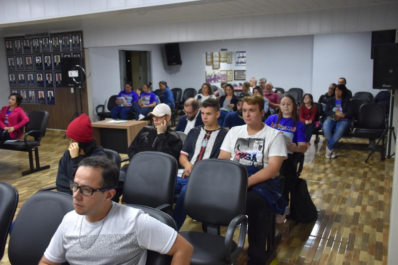 A sessão de ontem (17) contou com duas presenças especiais. A professora Edinéia Borsoi e a pedagoga Eliane Ghizzi, do Colégio José Marcondes Sobrinho, estiveram com os alunos do 2º e 3º ano do ensino médio noturno assistindo a sessão. Uma importante participação dos alunos para que eles tenham maior conhecimento de como funciona o trabalho dos vereadores.