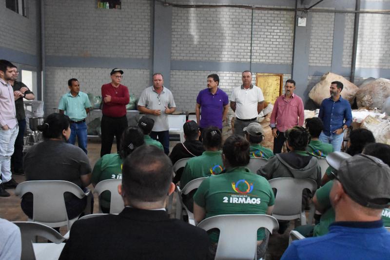 A prefeitura de Laranjeiras do Sul assinou hoje um termo de fomento com a Associação dos Catadores de Recicláveis Dois Irmãos. Serão repassados R$ 3 mil reais mensalmente à associação. Além disso, também foram entregues sextas básicas aos trabalhadores do local.