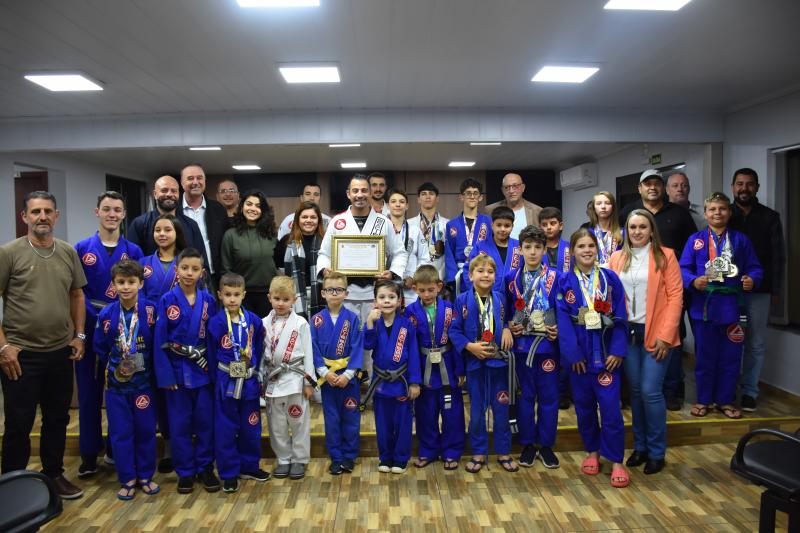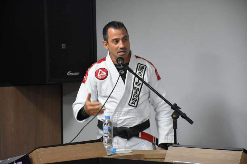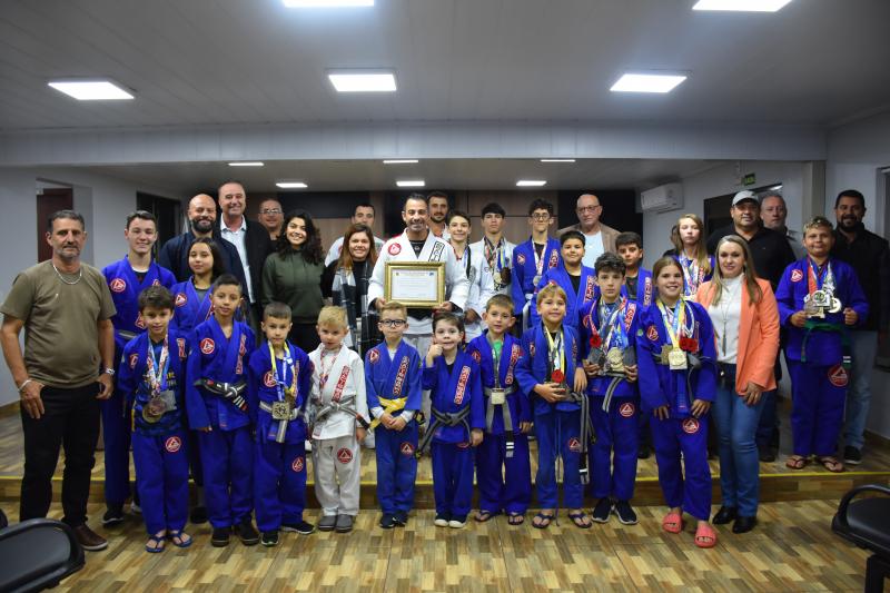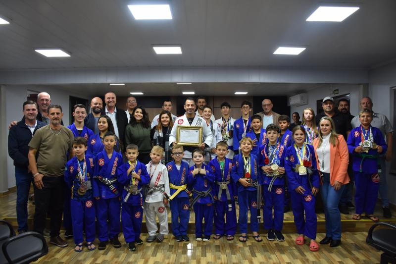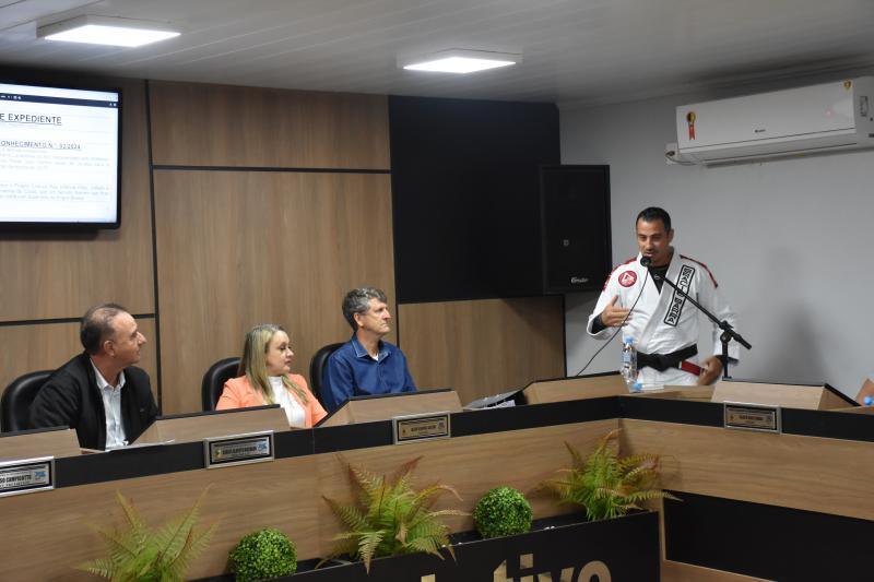 Quem também usou a palavra ontem na sessão ordinária foi Rodrigo Scopel, professor de Jiu-Jitsu, que recebeu Moção de Aplausos para a equipe Escola Gracie Barra Laranjeiras do Sul, representada por ele, que é graduado Faixa Preta. “É gratificante estar aqui, receber essa honraria. Viemos a um tempo trabalhando com o desenvolvimento das crianças desde quatro anos de idade e também tenho alunos de 58 anos. Recebo a moção como um reconhecimento desse trabalho”, afirmou Scopel.