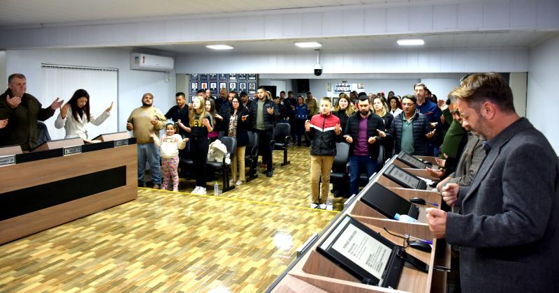 A 17ª sessão ordinária dos vereadores de Laranjeiras do Sul foi realizada na noite desta segunda-feira, 2 de junho. Mais uma vez, o destaque ficou por conta do público que lotou o plenário da Câmara, para acompanhar o trabalho dos vereadores. Durante sessão extraordinária, os vereadores aprovaram por unanimidade, o Projeto de Lei do Executivo, autorizando o mesmo a criar o Programa de doação de materiais de construção para vítimas de desastres naturais em Laranjeiras do Sul. Após sanção do Projeto por parte do prefeito, as famílias vítimas recentemente de desastres naturais ficam autorizadas a receber este auxílio da prefeitura.