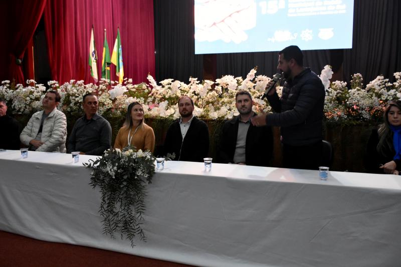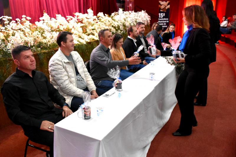 O presidente da Câmara de vereadores, Juvinha Viola, ao lado dos vereadores José Domiciano, Rodrigo Rocha Loures, Márcio dos Alexandres e Janice Couto, participaram nesta sexta-feira, 13, da 15ª Conferência Municipal de Saúde de Laranjeiras do Sul. Realizada pela Secretaria de Saúde e pelo Conselho Municipal de Saúde, a conferência reuniu diversas autoridades municipais, além dos delegados que foram eleitos na fase das pré-conferências e trabalhadores da Saúde.