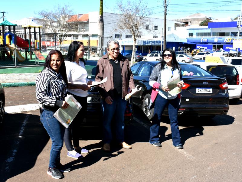 Nesta segunda-feira (11), os vereadores Almir de Paula Xavier, Fernando Luis Mattei e José Domiciano, além dos servidores Igor Mateus Ferreira Vaz, Kelly Elaine Ferreira e Maria Eduarda Rocha Schroeder, participaram da blitz educativa “Agosto Lilás”, realizada na Rua XV de Novembro, esquina com a Coronel Guilherme de Paula. A ação teve como objetivo conscientizar e orientar motoristas e pedestres sobre a prevenção e o combate à violência contra a mulher.