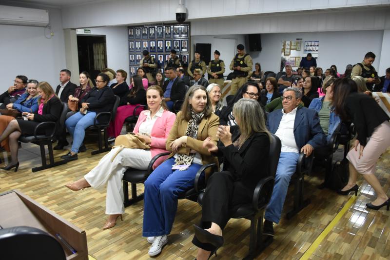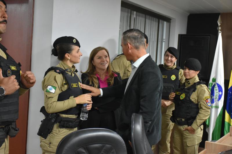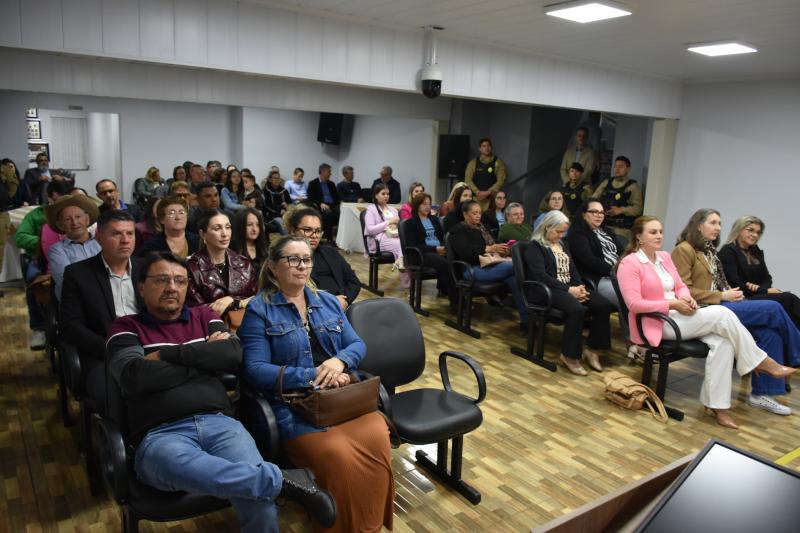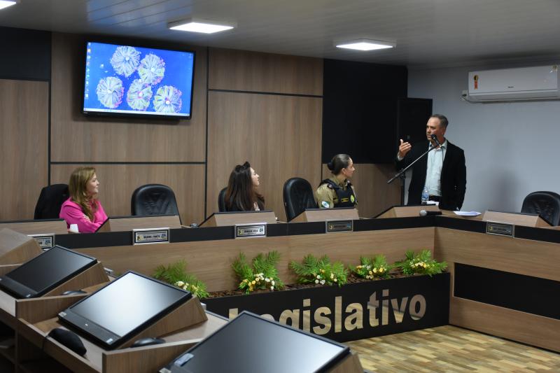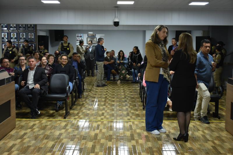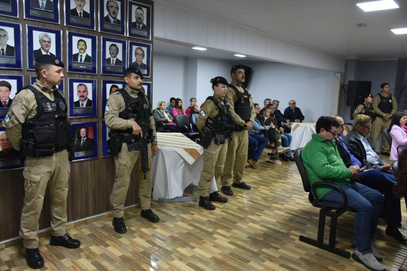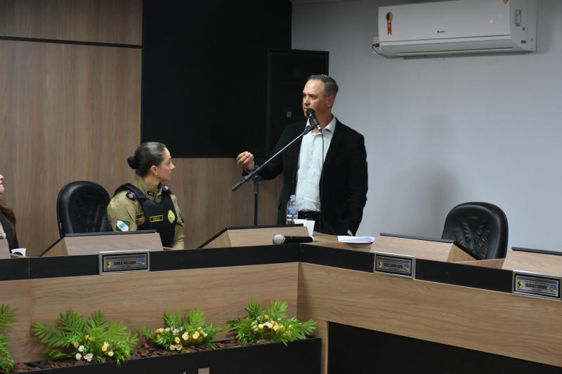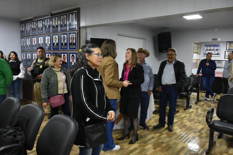 O ato solene lotou o plenário e contou com a presença de autoridades municipais, regionais e estaduais. Entre elas, a Deputada Federal licenciada e atual secretária estadual da Mulher, Igualdade Racial e Pessoa Idosa, Leandre Dal Ponte. Também prestigiaram a cerimônia o presidente da Câmara, vereador Juvinha Viola, vice-prefeito, Ademilson de Moraes, a primeira-dama do município, Daniele Mendes; representantes da Patrulha Maria da Penha, da Rede de Proteção à Mulher, as procuradoras parlamentares Thalita Muller (Nova Laranjeiras) e Elenice Silmara de Oliveira (Rio Bonito do Iguaçu), além dos vereadores Almir de Paula Xavier e Tarso Campigotto. Lideranças religiosas também marcaram presença, como o pastor Daniel Cristiano e o coordenador do movimento Fé e Política, Valdecir Miler, que abençoaram o início dos trabalhos.