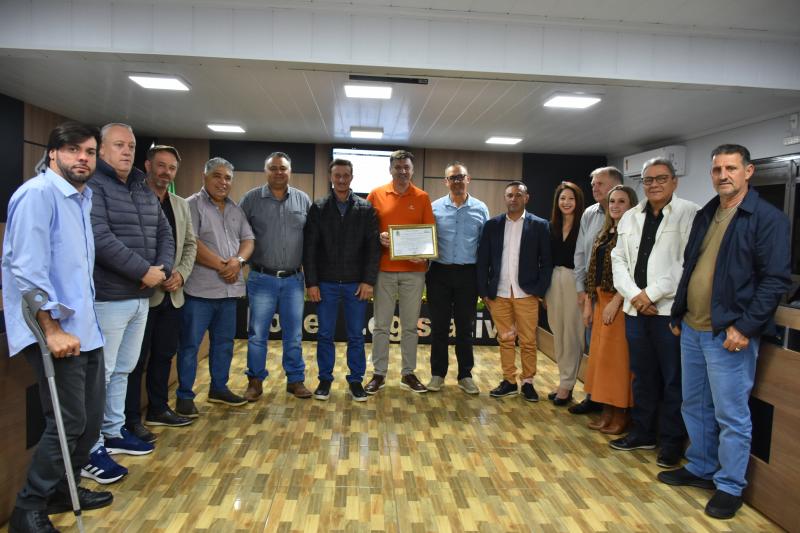O presidente da Cresol, Sérgio Bukovski, fez uso da tribuna para agradecer a homenagem e destacar a importância da instituição, que hoje conta com mais de 160 colaboradores e 14 mil cooperados em Laranjeiras do Sul.