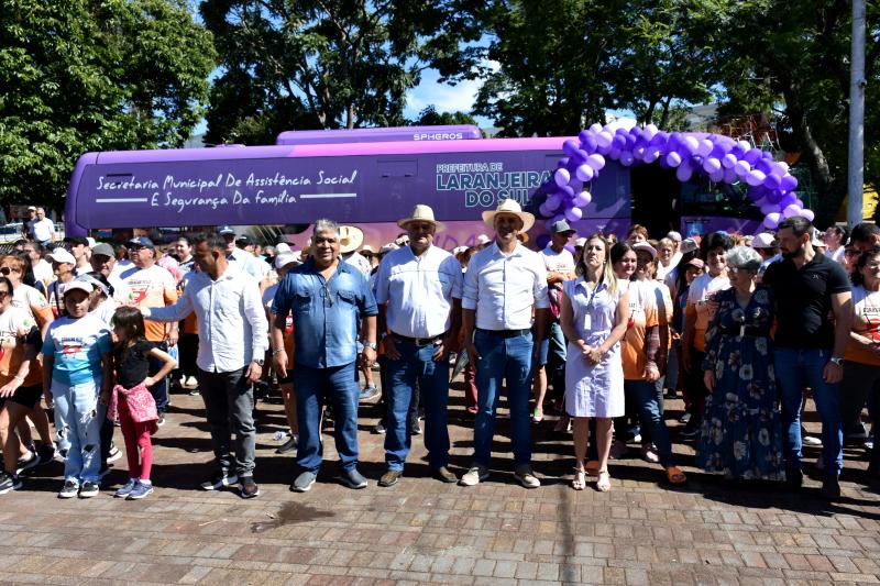 Os vereadores Juvinha Viola, Fabio Borsoi, José Domiciano e Márcio dos Alexandre, além do consultor legislativo Gilmar Zocche, participaram do ato oficial de entrega de um ônibus do programa Cuida Mais Paraná, destinado à Secretaria Municipal de Assistência Social de Laranjeiras do Sul. A solenidade foi realizada na Praça José Nogueira do Amaral e reuniu autoridades estaduais, municipais e membros da comunidade.