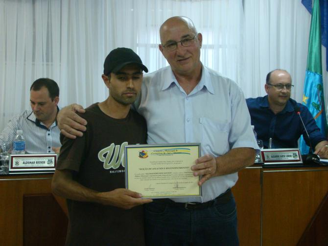 No Grande Expediente foi feito a entrega de Moção de Aplausos e reconhecimento, a todos os funcionários públicos municipais responsáveis pela coleta de lixo. A homenagem foi proposta pelo vereador Darci Massuqueto e aprovada por unanimidade por todos os vereadores. Na oportunidade, além dos funcionários homenageados, também estiveram prestigiando a sessão os secretários municipais além da prefeita Sirlene Svartz.