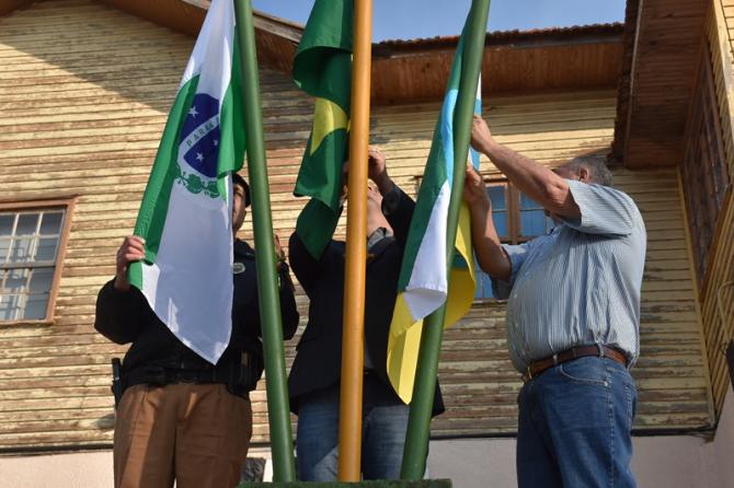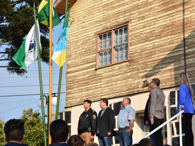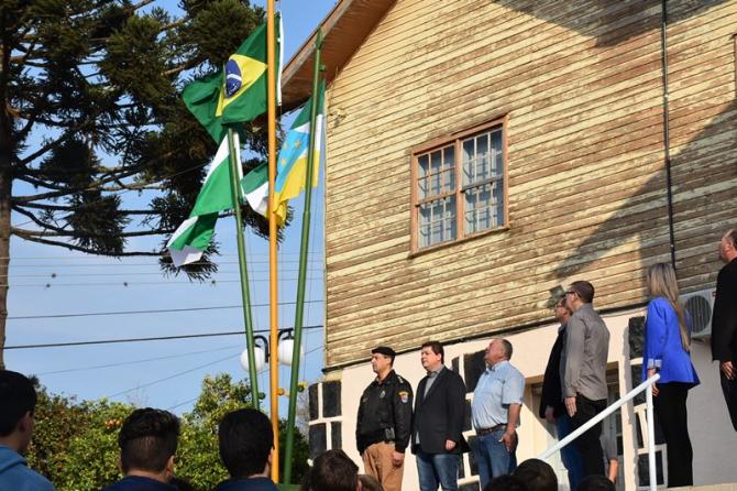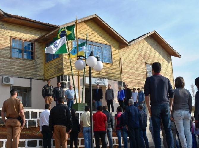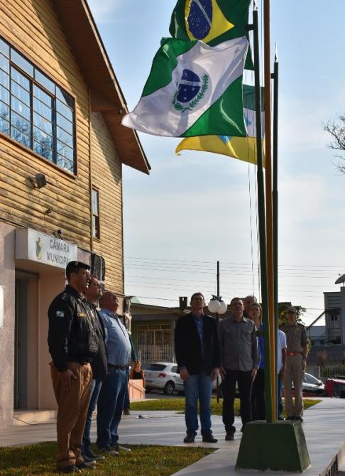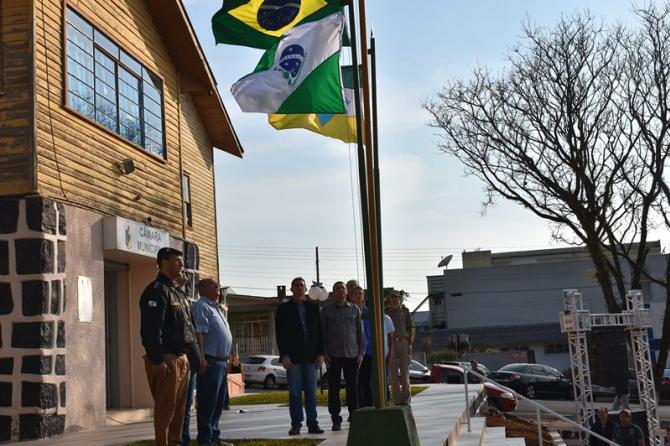 Na manhã desta sexta-feira (1°), Poderes Legislativo e Executivo realizaram a solenidade de abertura da Semana da Pátria, no piso externo da Câmara de Laranjeiras. A cerimônia foi marcada por hasteamento de bandeiras e canto dos Hinos Nacional Brasileiro, do Paraná, de Laranjeiras do Sul e da Independência. As festividades encerram no próximo dia 7, com ato cívico na Praça José Nogueira do Amaral, a partir das 8h.