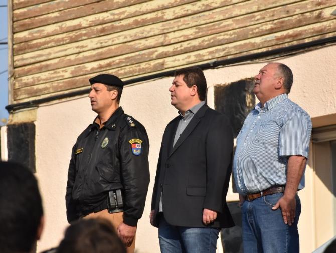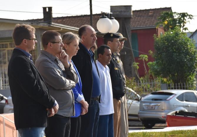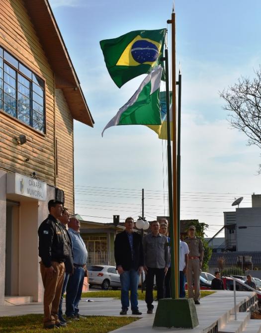 Participaram da solenidade os vereadores João Schefer, Carlos Machado, Valmir Trindade Sete, Alex Schroeder; o prefeito Berto Silva; o vice-prefeito Valdemir Scarpari, Secretários Municipais, autoridades policiais, servidores do Legislativo e Executivo, professores e alunos das escolas Floriano Peixoto, Valdemar Boeira, Aluísio Maier, Leocádio José Correia e da APAE (Associação de Pais e Amigos dos Excepcionais).