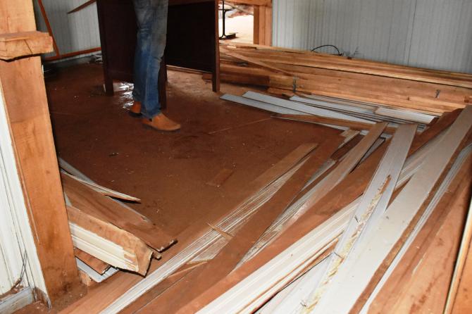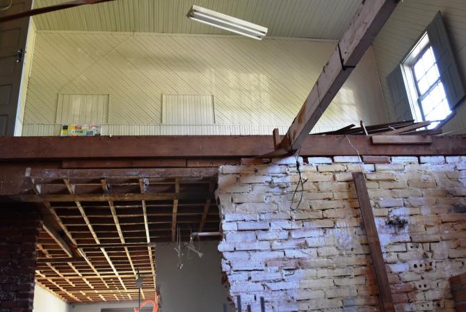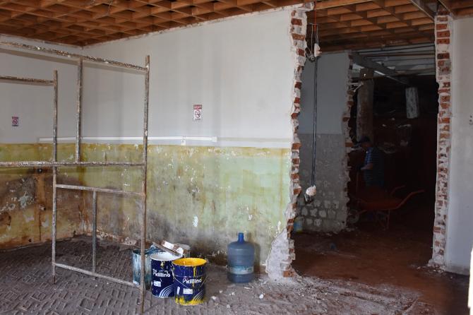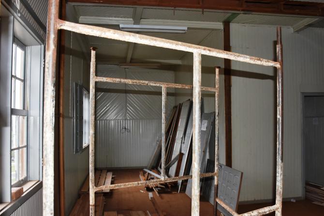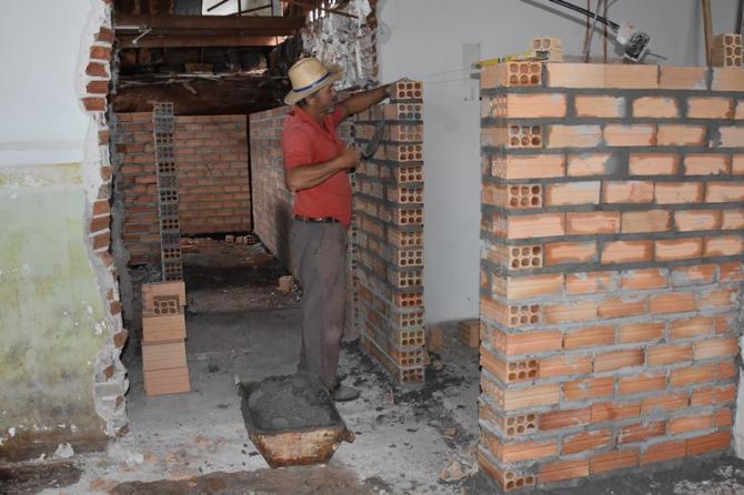 Após desocupação do prédio superior por parte da Secretaria de Obras e Urbanismo, carpinteiros mexem nas estruturas de madeira para, na sequência, iniciar as divisórias. No local serão construídas salas adminitrativas e gabinetes dos vereadores, mantendo o máximo das características originais do espaço
