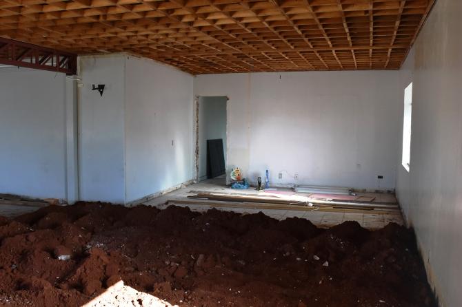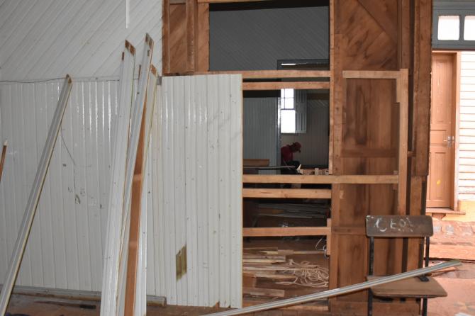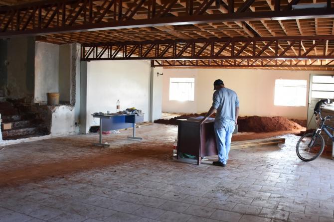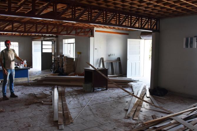 Atualmente os trabalhadores estão mexendo no madeiramento da estrutura superior, onde ficarão os gabinetes de vereadores e salas administrativas. Na parte inferior estão sendo construídos banheiros, cozinha e almoxarifado. Empresa responsável é a BMB Construtora Eireli, de Nova Laranjeiras.