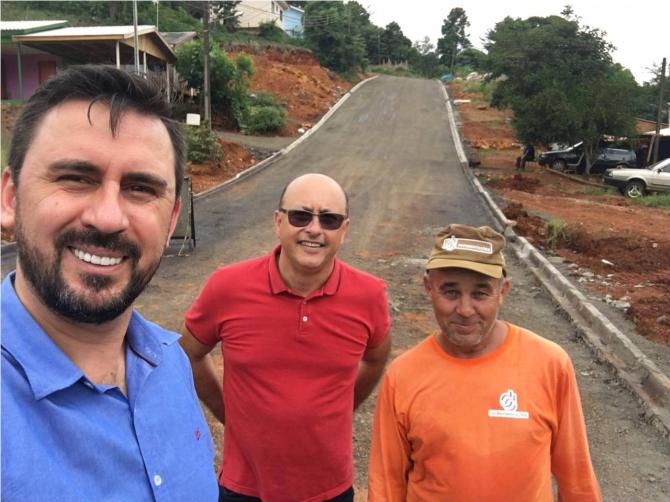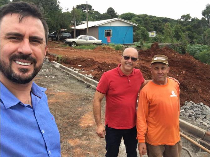 Os vereadores Júnior Gurtat e Anderson de Oliveira estiveram nesta terça-feira (12), acompanhando a continuidade das obras de pavimentação no bairro Água Verde. Os vereadores fiscalizaram o serviço realizado nos trechos das ruas Bahia; Goiás, Paraná e Tiradentes. As vias já receberam as etapas de drenagem de águas pluviais, meio-fio e reperfilamento. A camada asfáltica deve ser concluída em breve. A empresa responsável é a D&D Pavimentações.