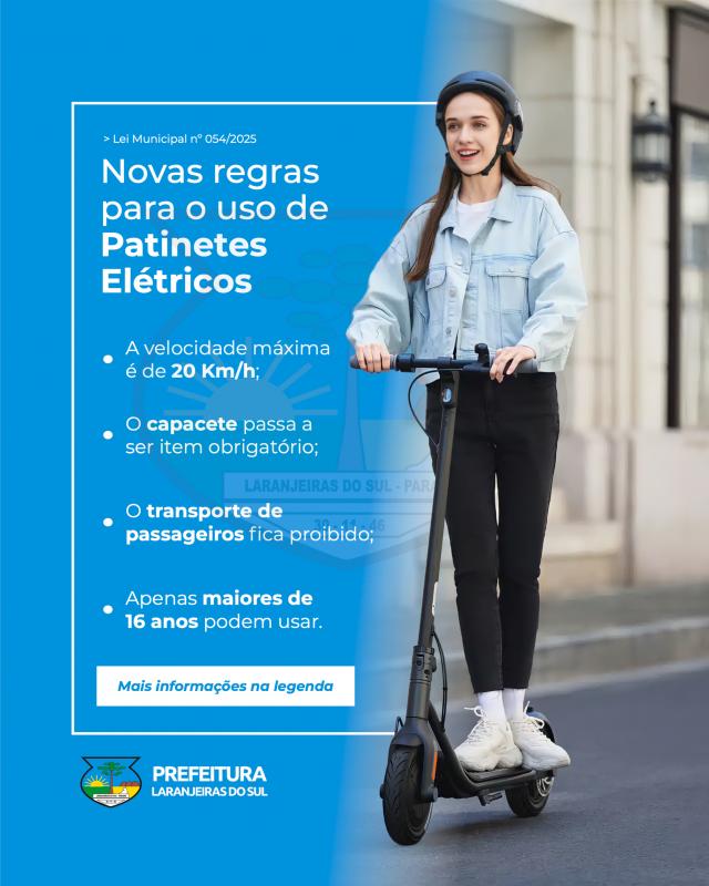 Laranjeiras do Sul regulamenta uso de Patinetes após aprovação do Projeto de Lei 009/2025