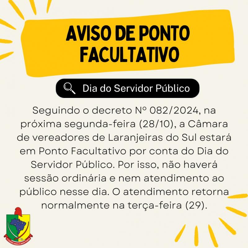Câmara estará em Ponto Facultativo na segunda-feira (28)